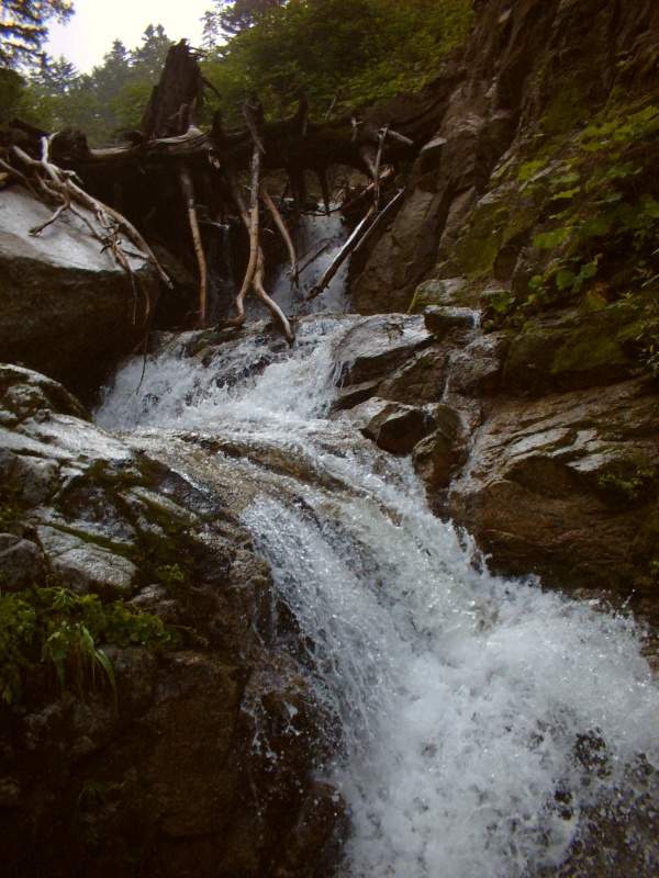 雷が遠ざかった後はどしゃぶりの雨。最後まで走るように下山した。この雨で有峰道路が土砂崩れで通行止めになり、小口川線で帰路についた。下山路のインパクトが強すぎて、沢の記憶が吹っ飛んでしまったよー。でも、本当に沢登りは登山の原点だなぁなんて考えながら、O氏が沢にはまる理由がなんとなくわかった気がした山行でした。